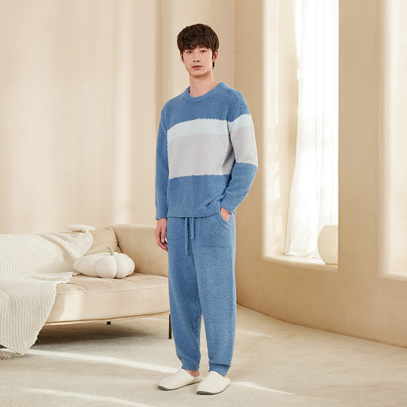 男士睡衣冬季珊瑚绒三层夹棉加厚加绒男款青少年2025年新款家居服
