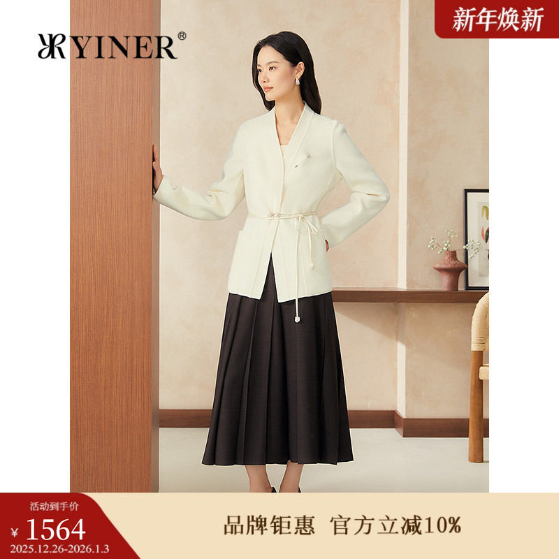 【美丽诺羊毛+山羊绒】YINER音儿2025春季新款新中式V领短外套