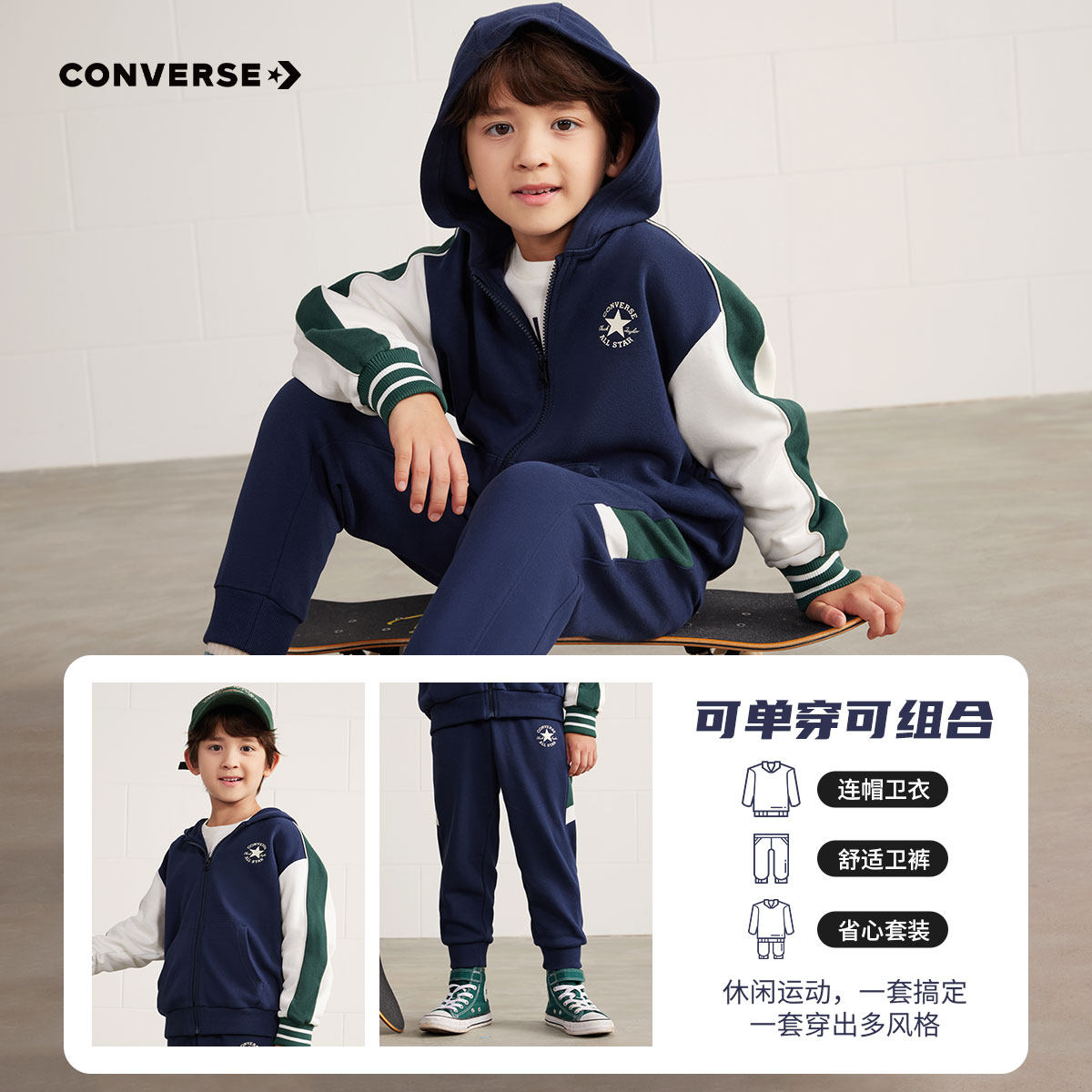 Converse匡威儿童装男童套装2024冬季新款两件套上衣裤子休闲运动