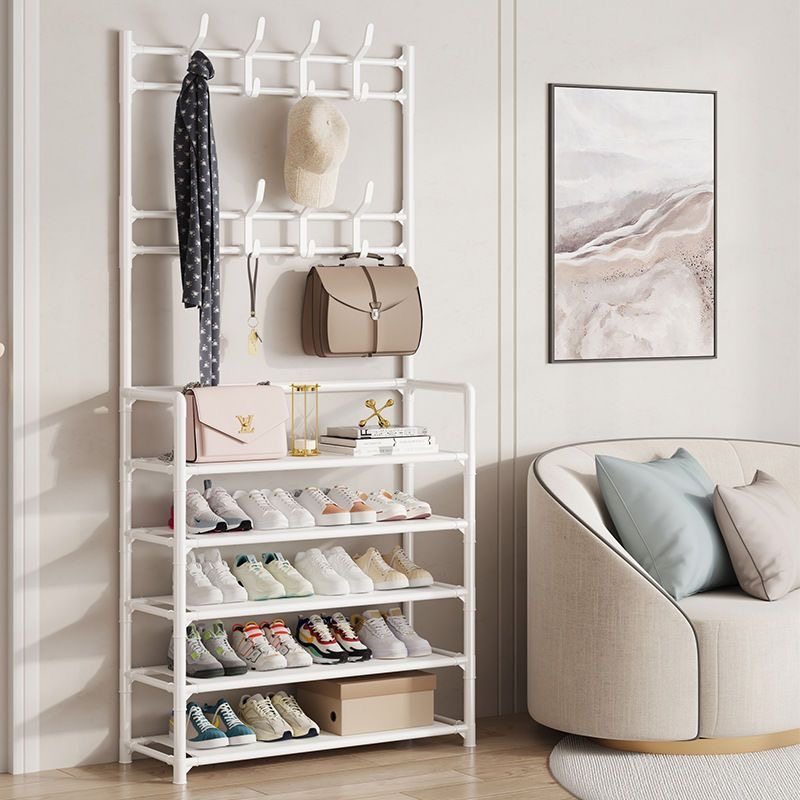 家用一体架多层简易衣帽架门口收纳鞋架宿舍鞋柜出租房置物架落地
