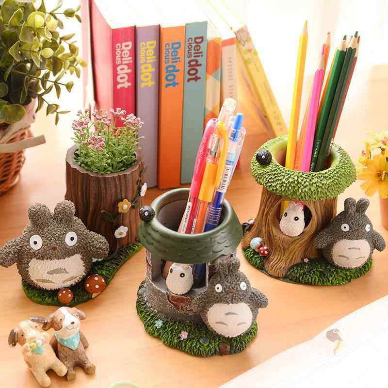 创意时尚学生桌面摆件可爱卡通收纳儿童个性办公室龙猫笔筒女ins