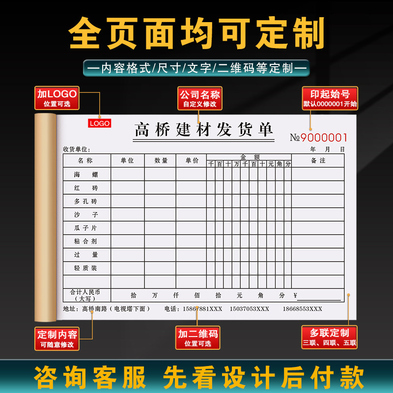 【建材店专用发货单】定制二联装饰材料送货出货单五金配件销售销货清单水泥成品出入库单油漆配送收货确认单