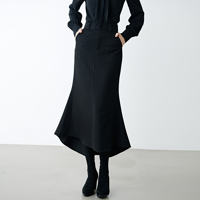 晚白2025年秋冬新款气质简约裙子垂顺修身高腰显瘦优雅知性鱼尾裙