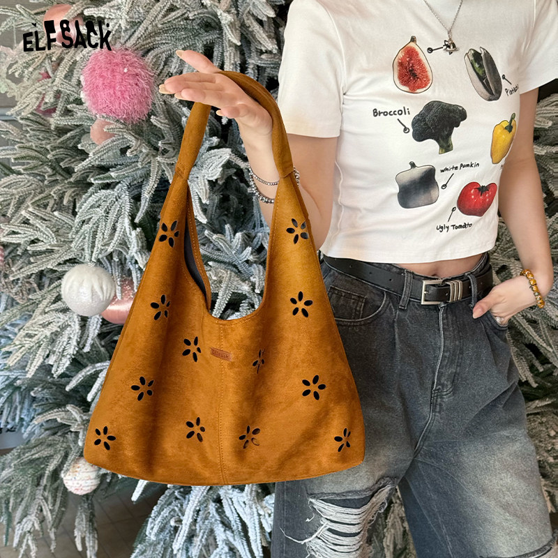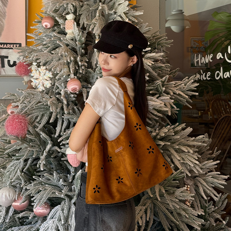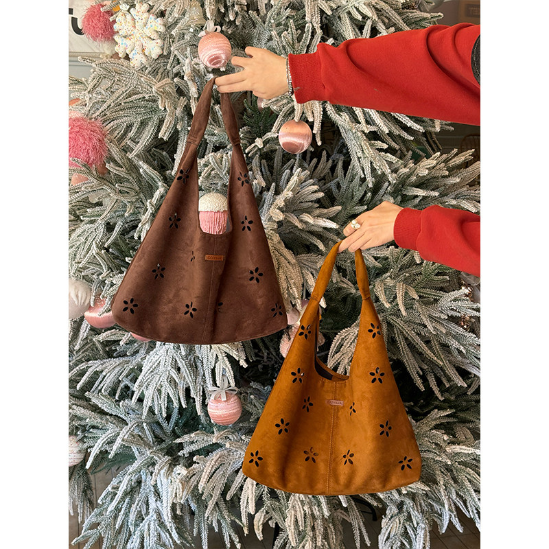妖精的口袋复古休闲麂皮绒单肩包女2025年新款通勤百搭休闲包包