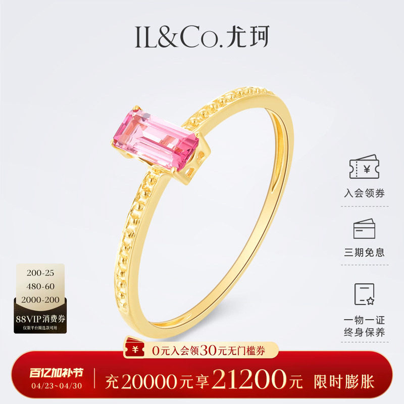 ILCO尤珂 红18K金天然彩色宝石戒指复古钻石镶嵌粉碧玺彩宝女款戒