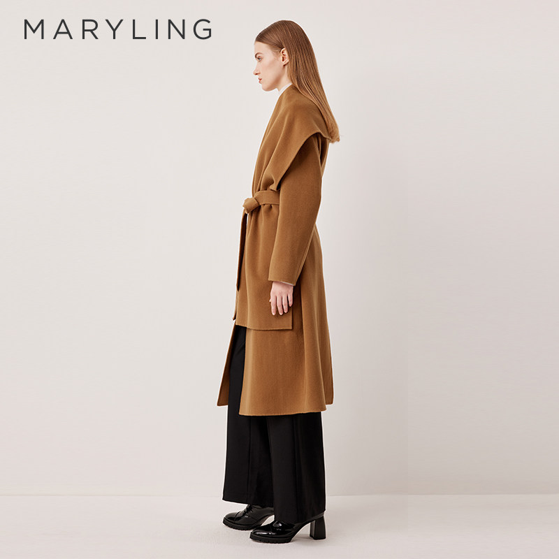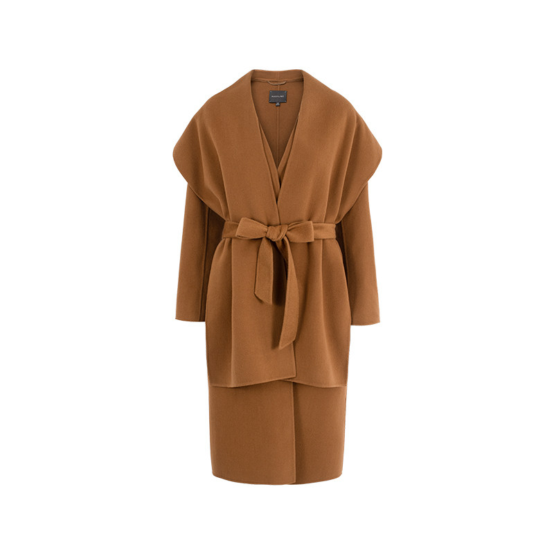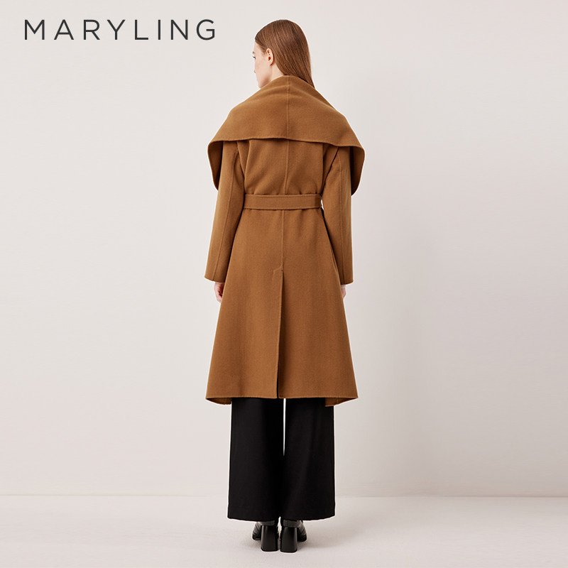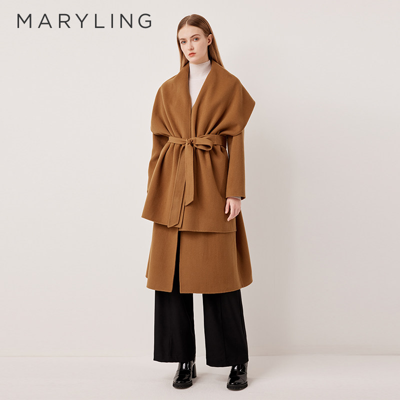 MARYLING玛俪琳2025冬季新品驼色披肩双面呢系带大衣A1FHW93560