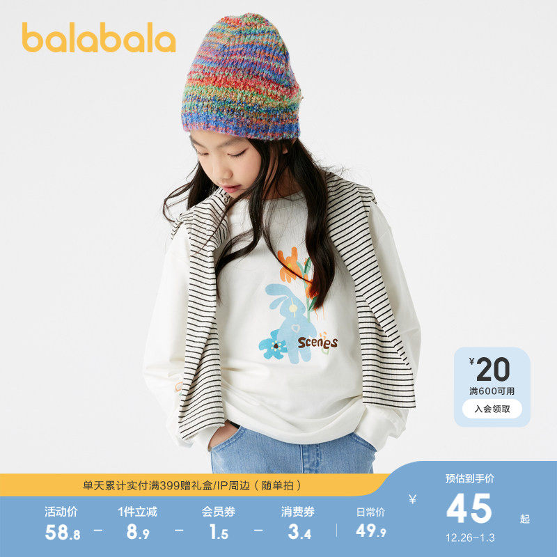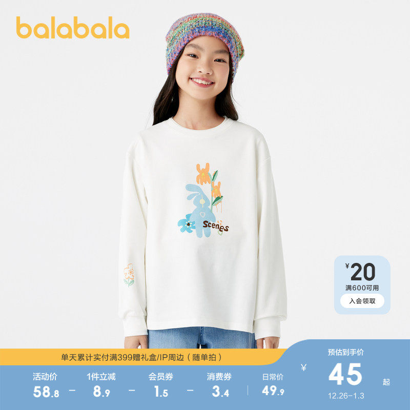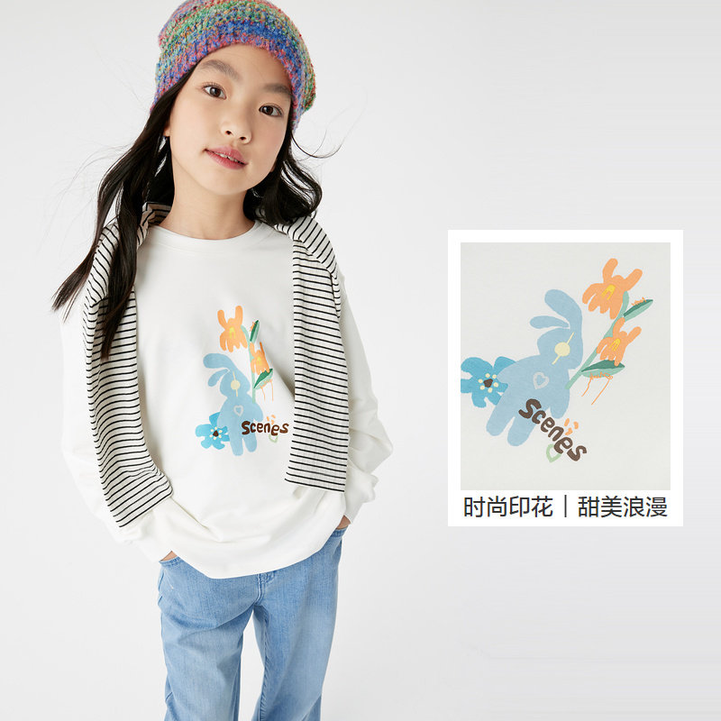 巴拉巴拉童装女童长袖t恤儿童秋装大童印花甜美舒适洋气休闲上衣