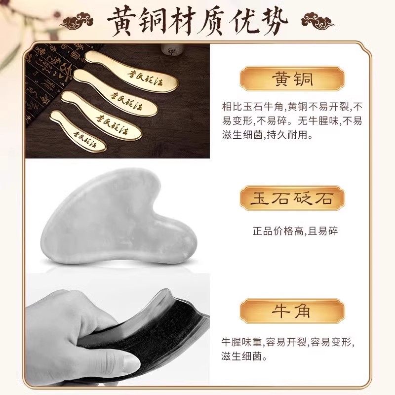 李氏砭法黄铜刮痧板纯铜背部刮全身通用虎符砭刮痧刀面部经络牛角