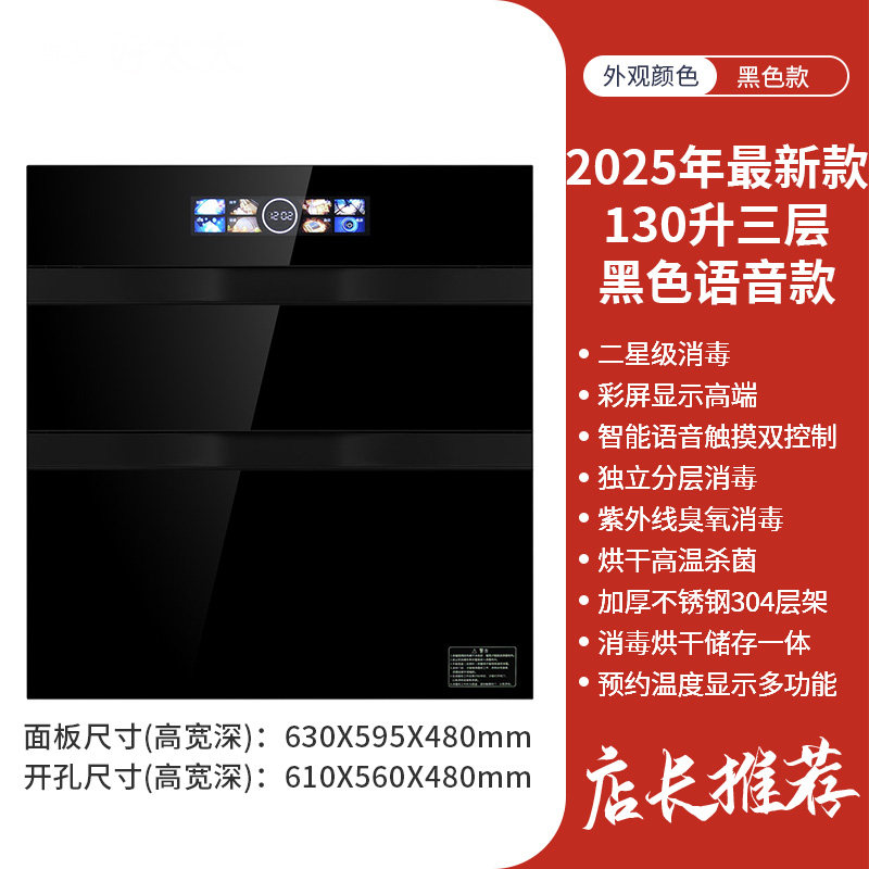 樱花消毒柜家用嵌入式紫外线130L升三层厨房餐具碗筷消毒碗柜小型