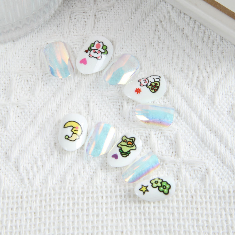 月亮小熊磷光电镀儿童穿戴甲安全环保欧美现货