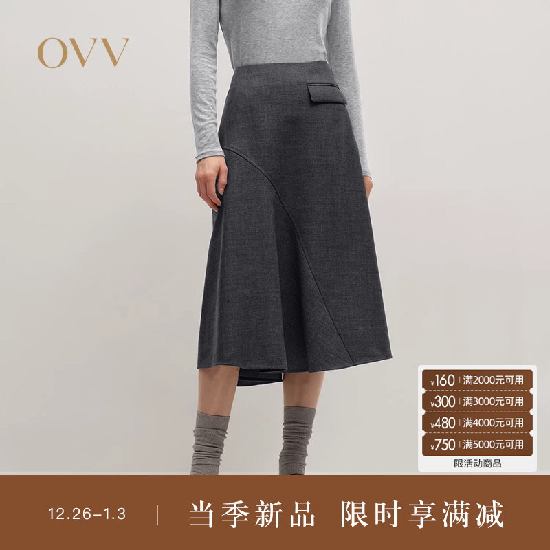 OVV2025秋冬新款女装大裙摆伞裙羊毛精致休闲半身裙