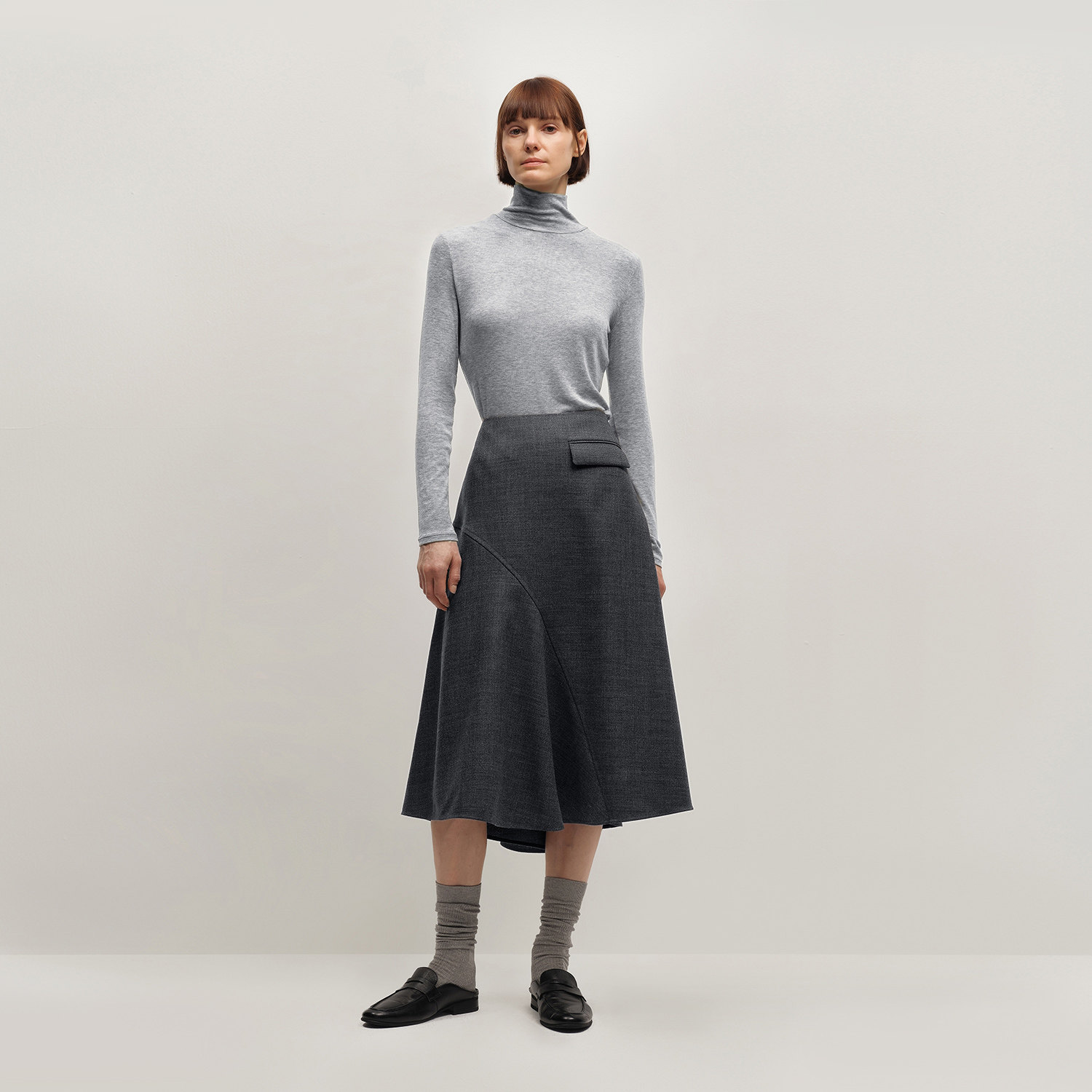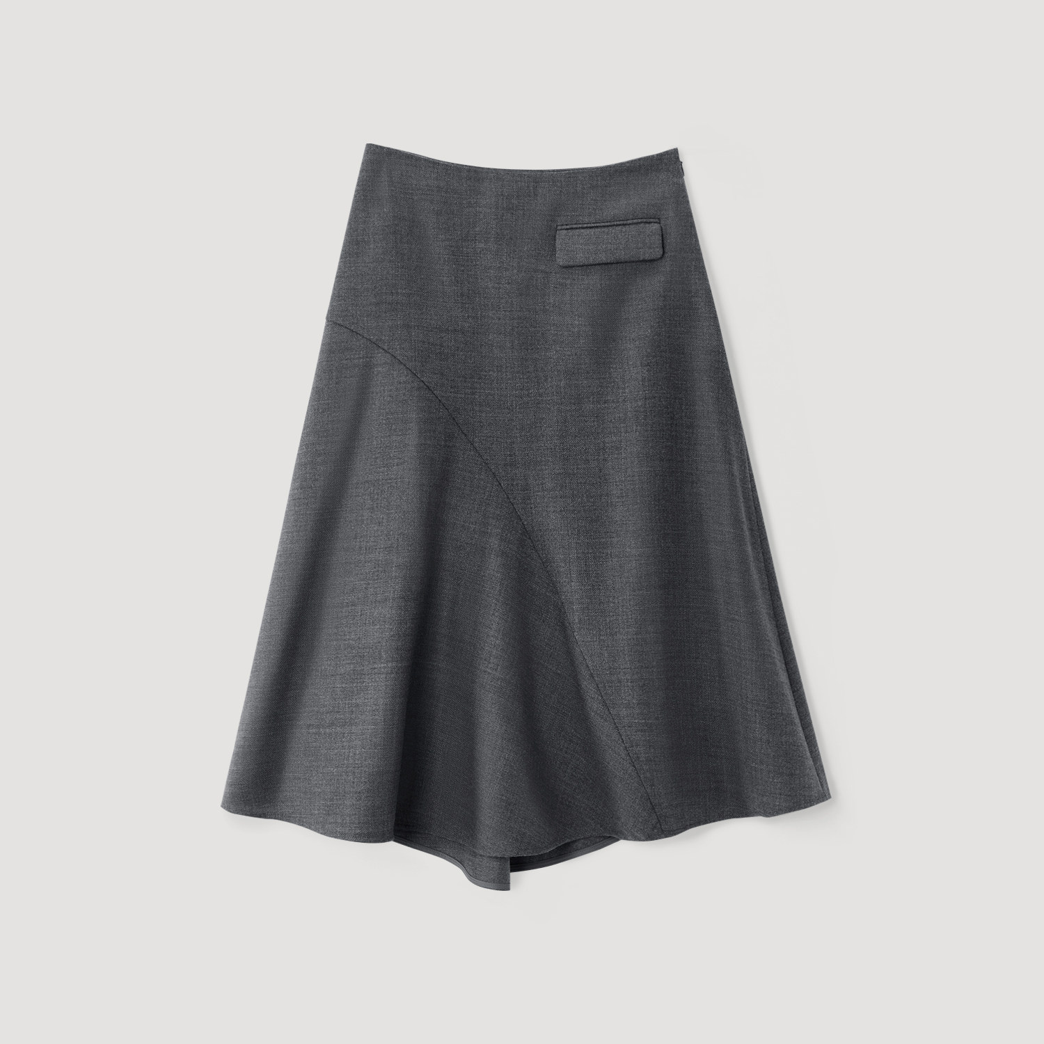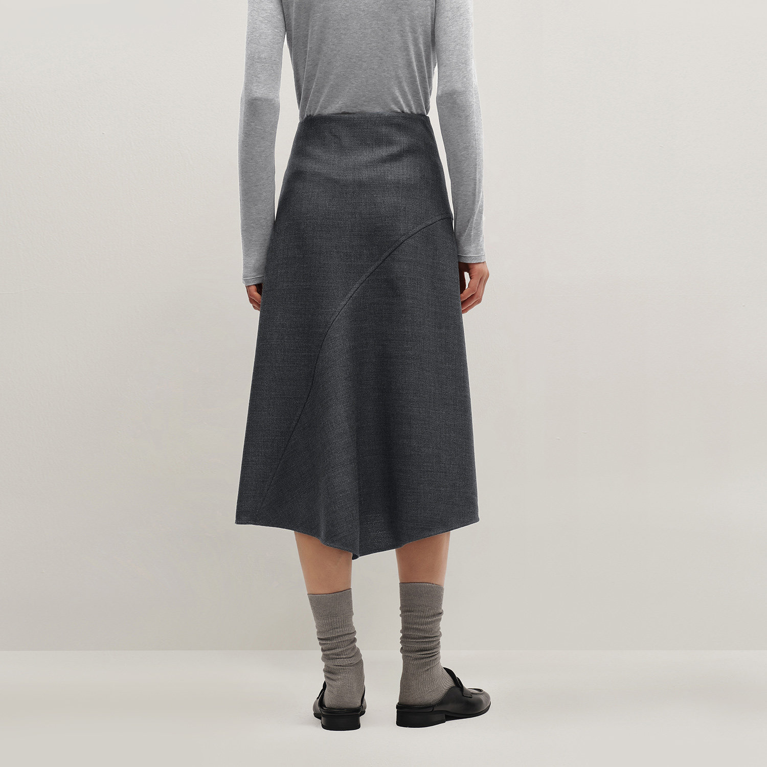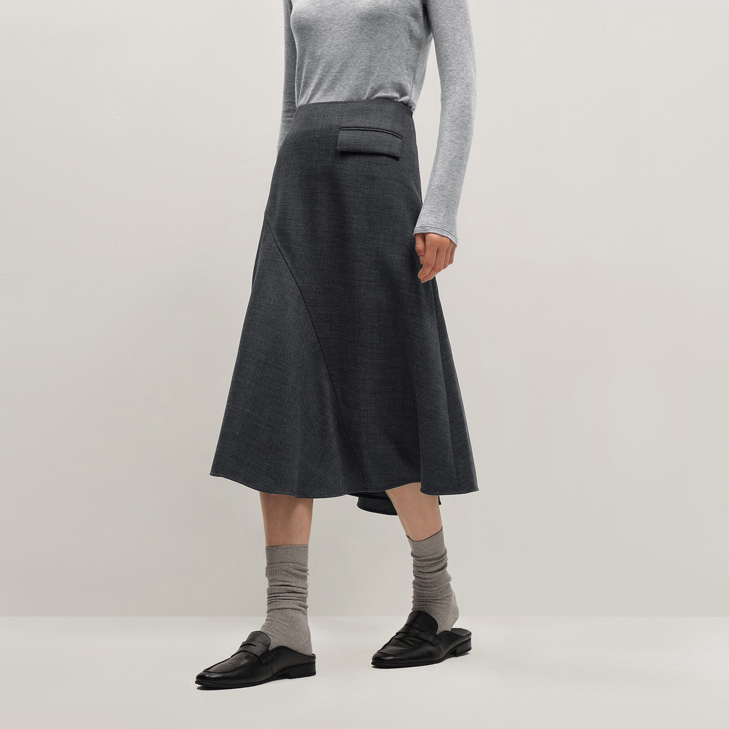 MJ STYLE灰色百褶西装裙女秋冬半身裙高腰休闲大摆a字过膝中长裙