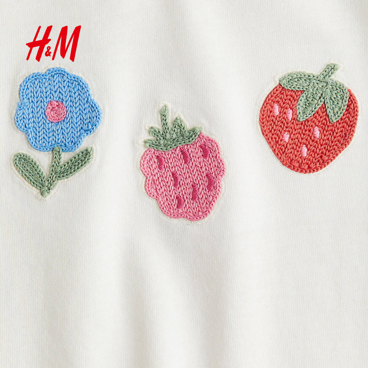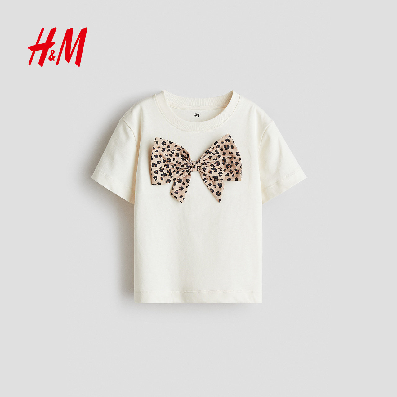 HM童装儿童女童T恤2025新款棉质圆领印花图案宽松短袖上衣1276546