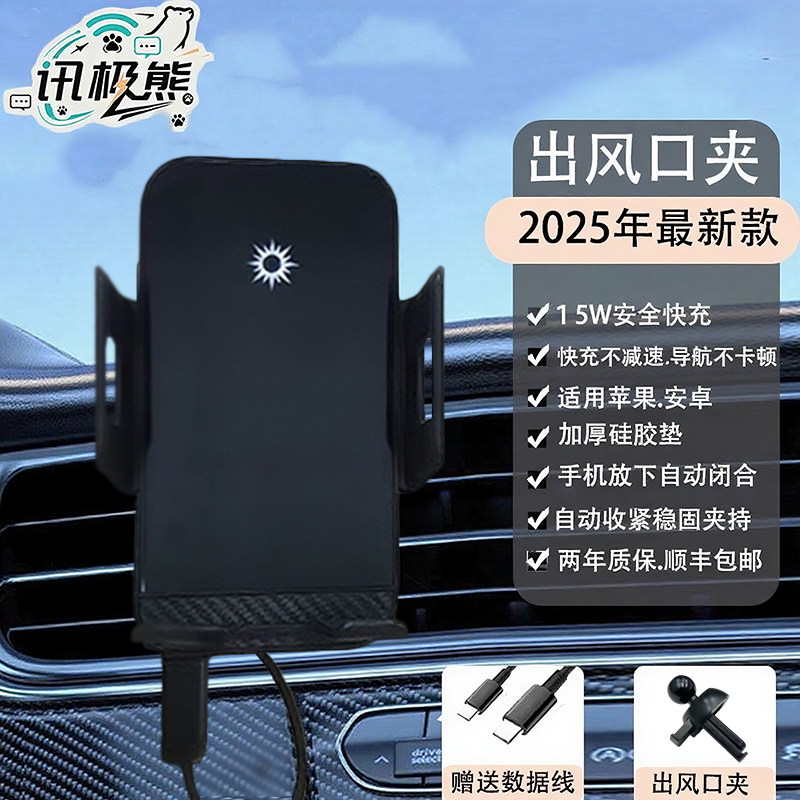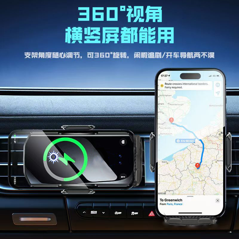 新款智能感应车载手机支架无线充电器导航手机支架汽车出风口专用自动开合锁紧15W快充苹果华为小米安卓通用