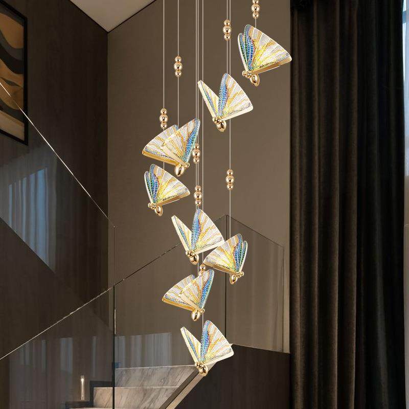 蝴蝶吊灯现代简约个性餐厅吧台床头灯北欧灯饰复式楼梯复古风