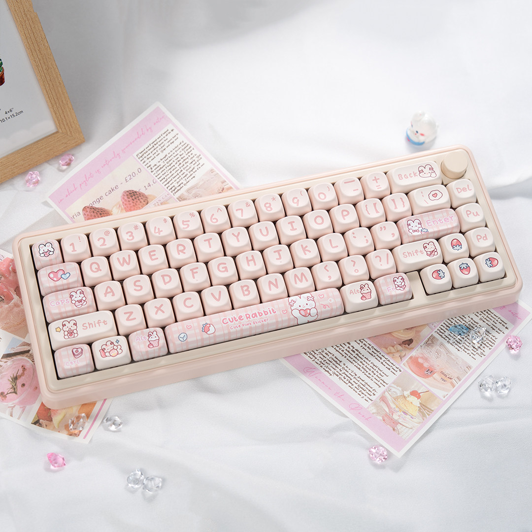 漫步猫QMK65无线蓝牙有线机械键盘女生可爱办公游戏静音麻将音RGB