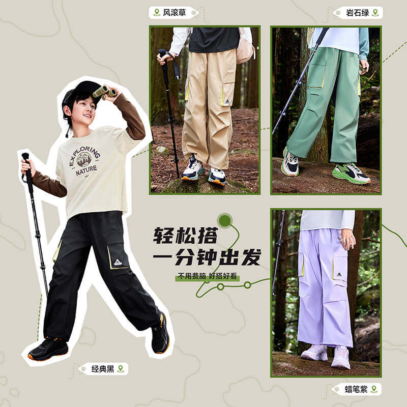 雨屏科技|361童装男女童梭织长裤2025春秋新款中大童运动裤裤子