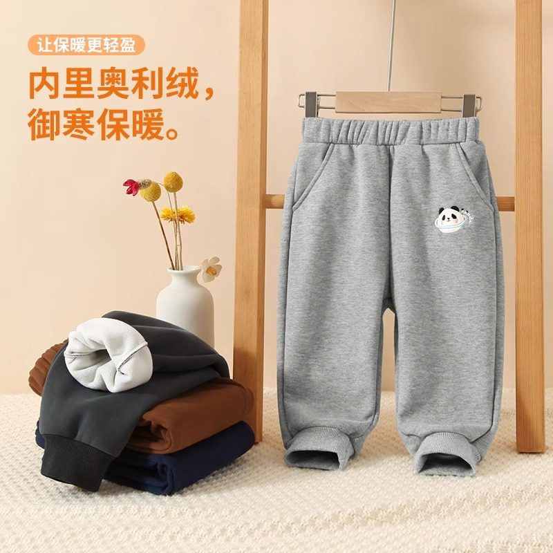 婧麒宝宝一体绒裤子儿童冬款休闲卫裤中小童秋冬季加绒运动长裤
