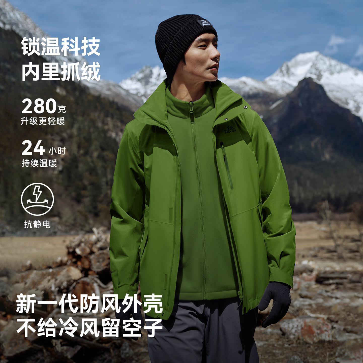 【新色发售】伯希和山野鼠尾绿冲锋衣男冬季户外三合一防风外套女