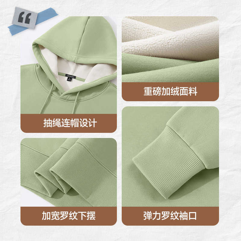 GV真维斯加绒卫衣男连帽秋冬重磅墨绿色外套男款2025新款帽衫厚C