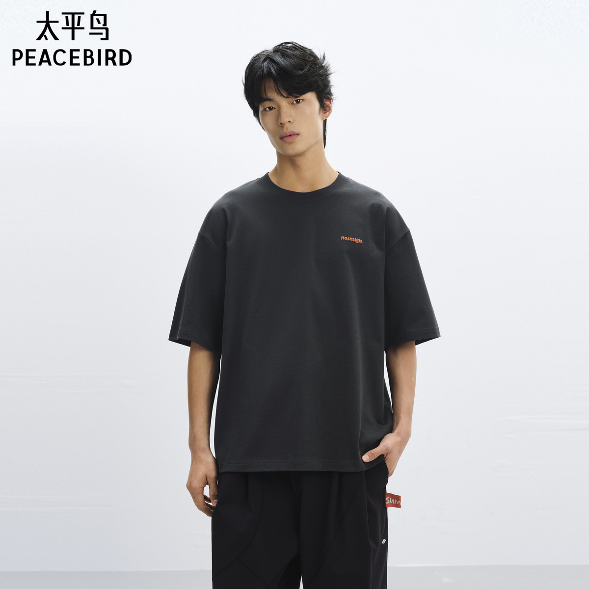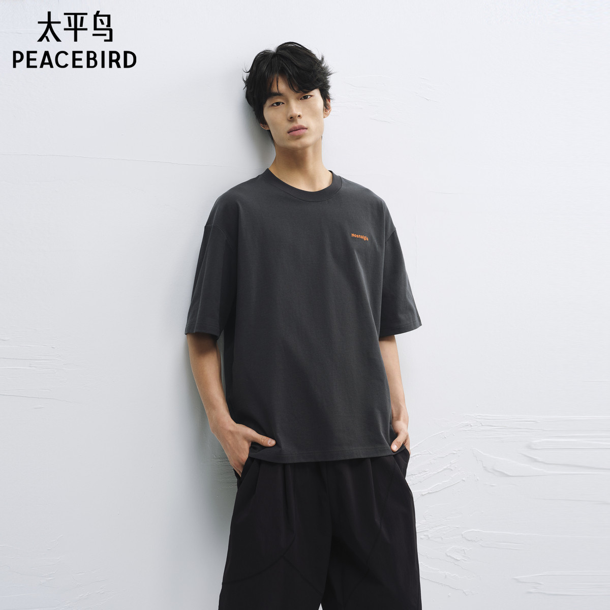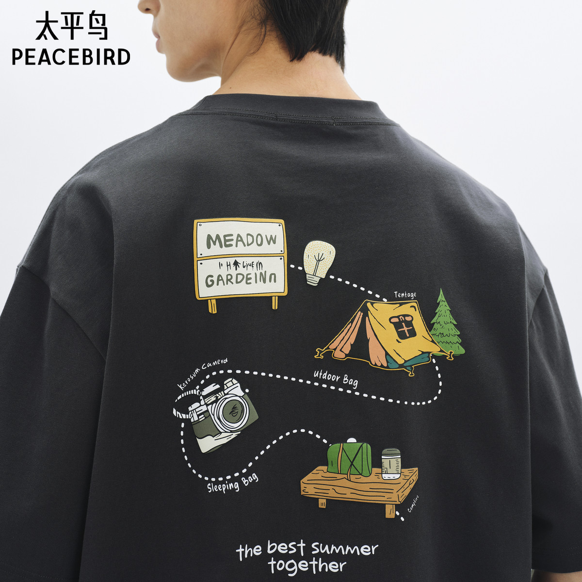 【重磅】太平鸟男装印花短袖T恤25夏新款山系刺绣体恤衫宽松半袖S