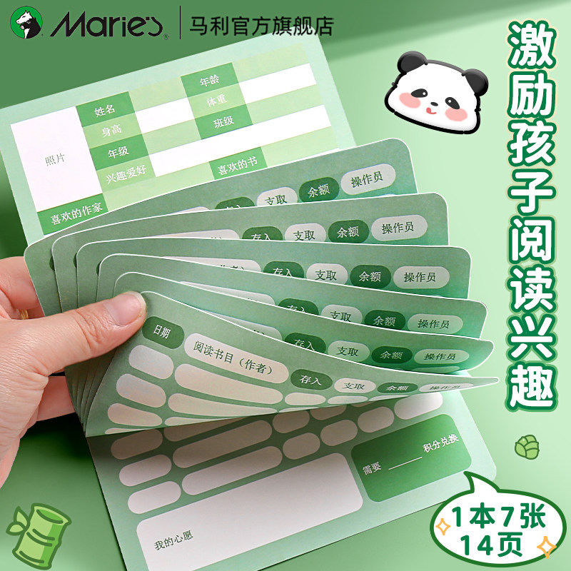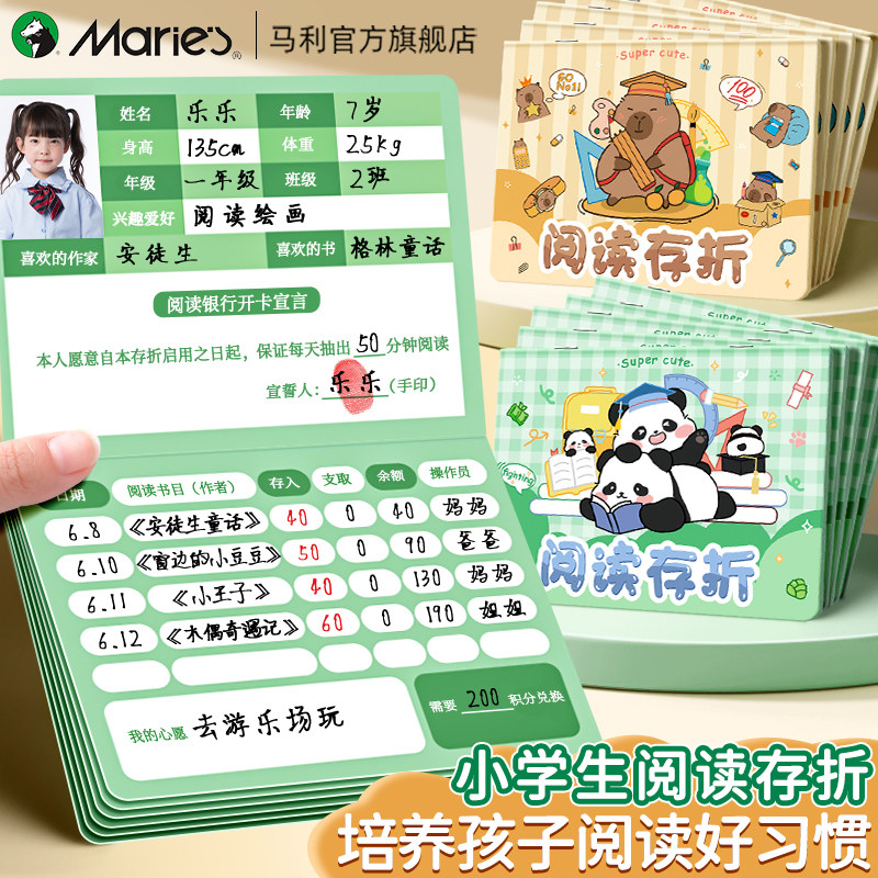马利阅读存折记录卡皮巴拉打卡小学生一年级二三年级读书学习好词句摘抄本儿童激励存折本孩子心愿奖励积分卡
