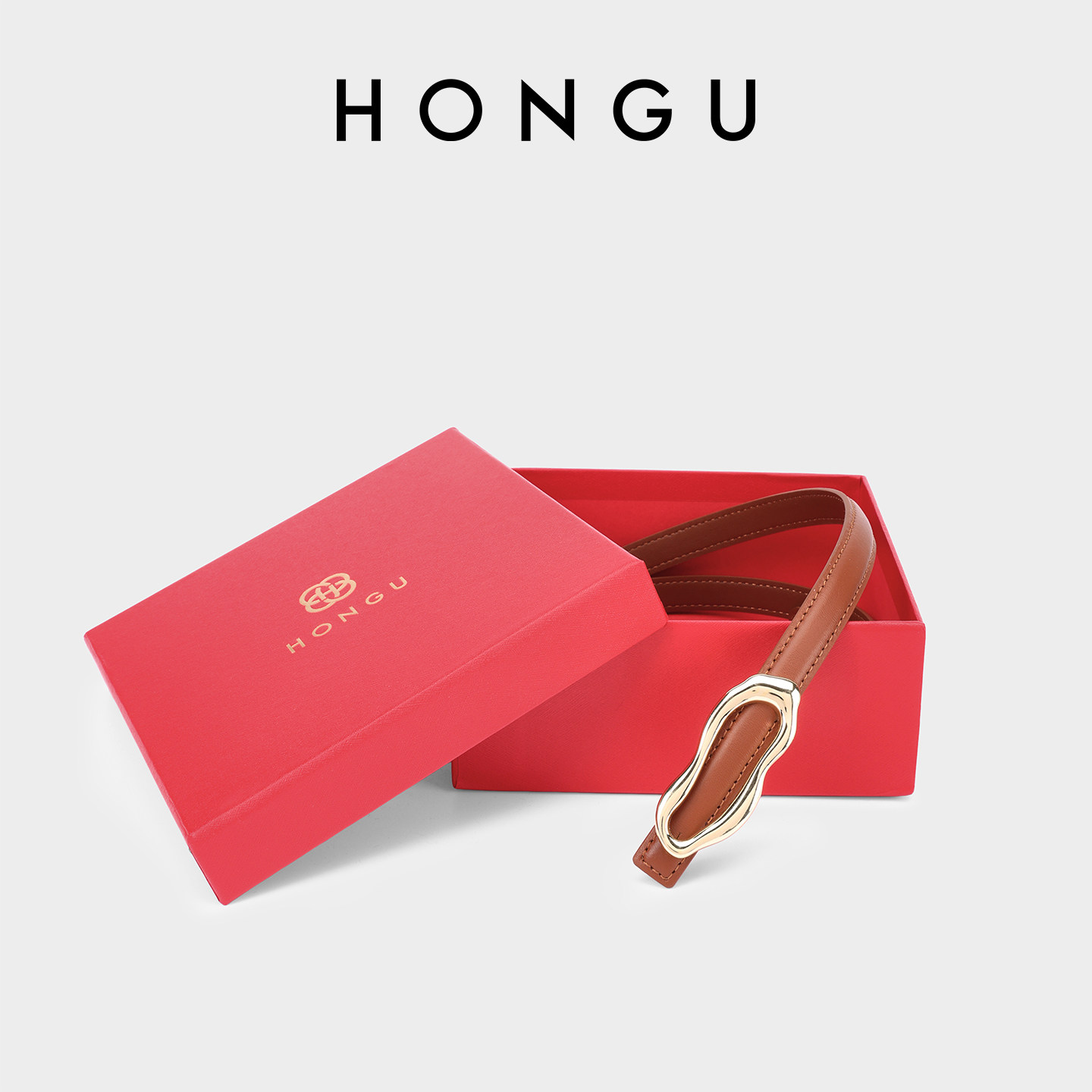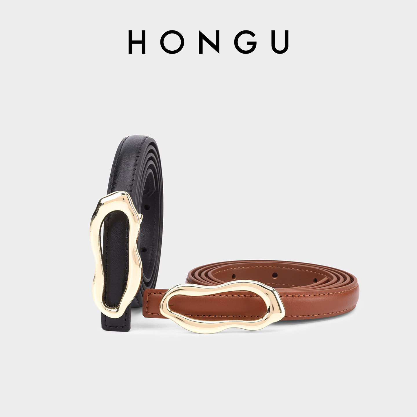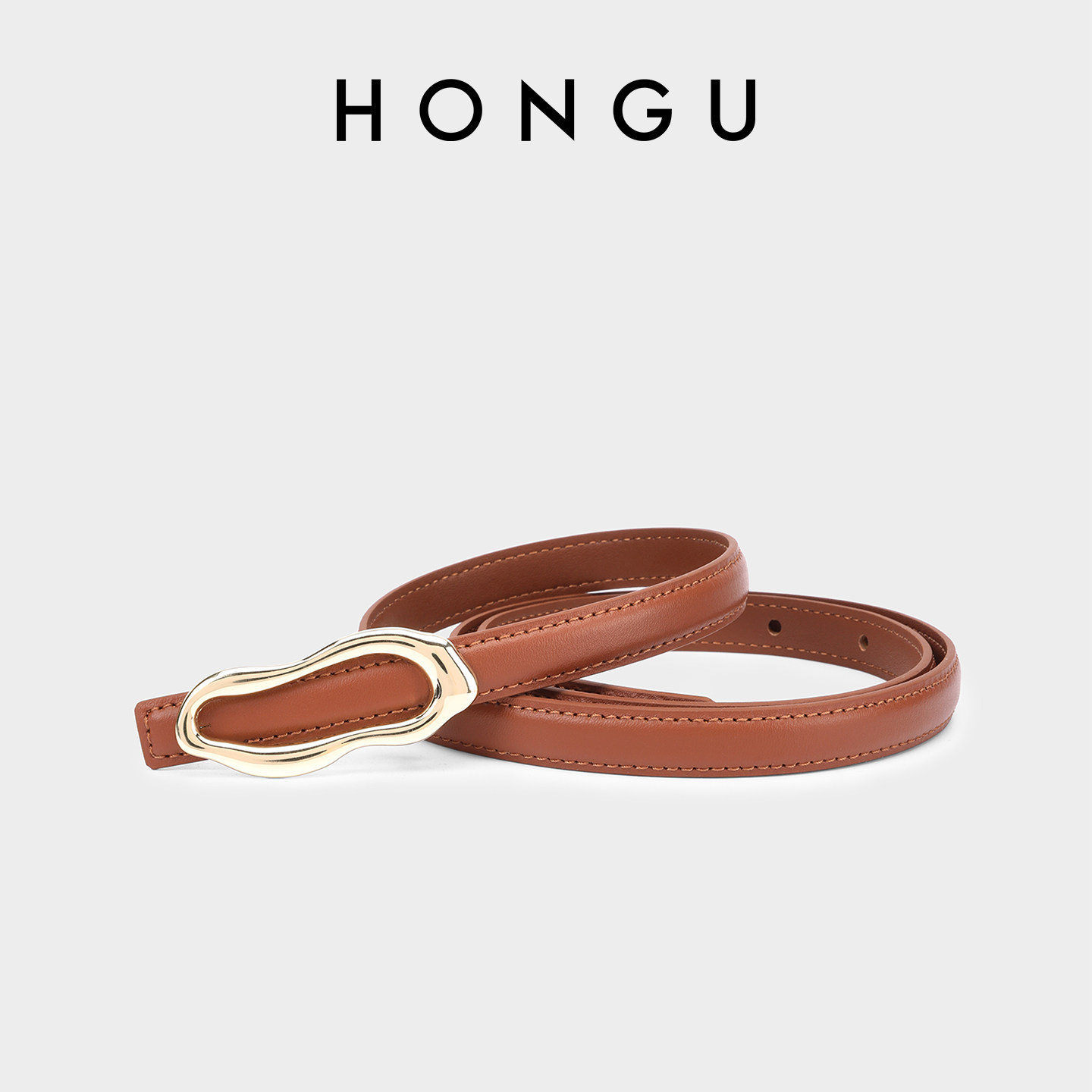 红谷新款女士皮带牛皮针扣细腰带休闲时尚简约百搭装饰牛仔裤带女