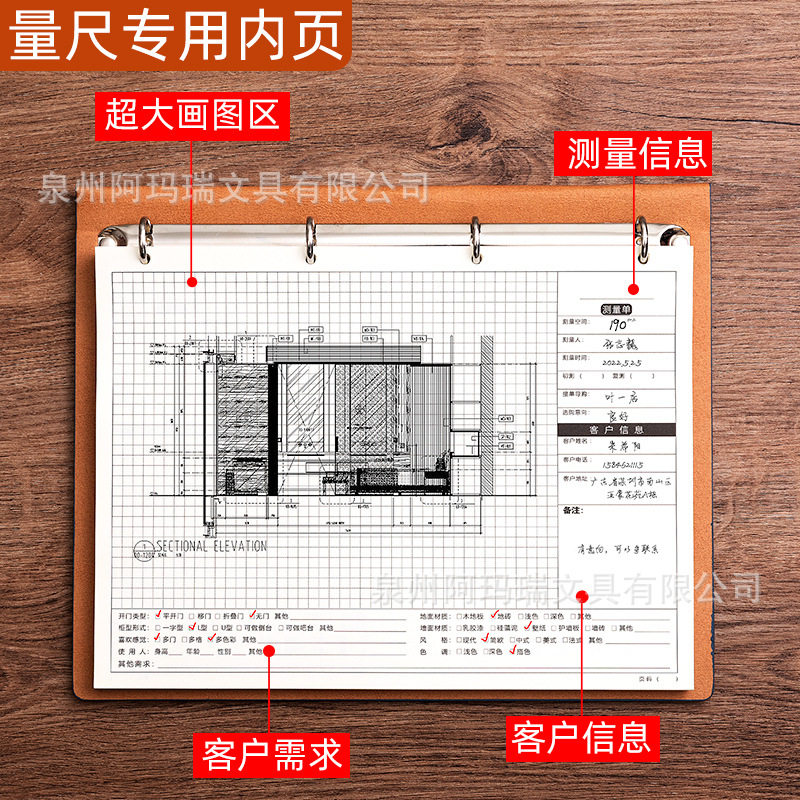 量房本设计师量尺专用本测量本a4室内设计装修笔记本子画图本网格