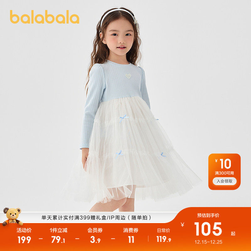 巴拉巴拉宝宝连衣裙蓬蓬网纱裙A字裙女童装2025秋季新款裙子儿童