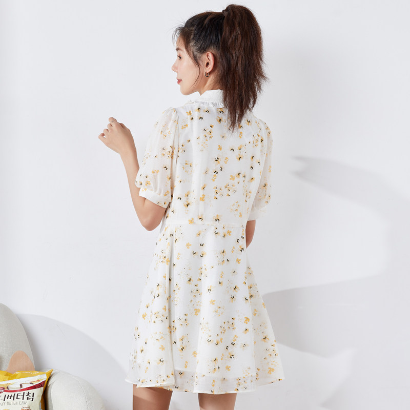 唐狮夏季女装连衣裙娃娃领碎花短款炸街收腰a字减公主裙子