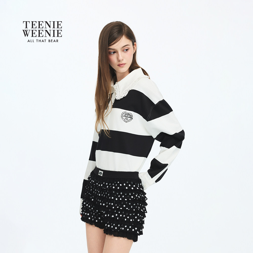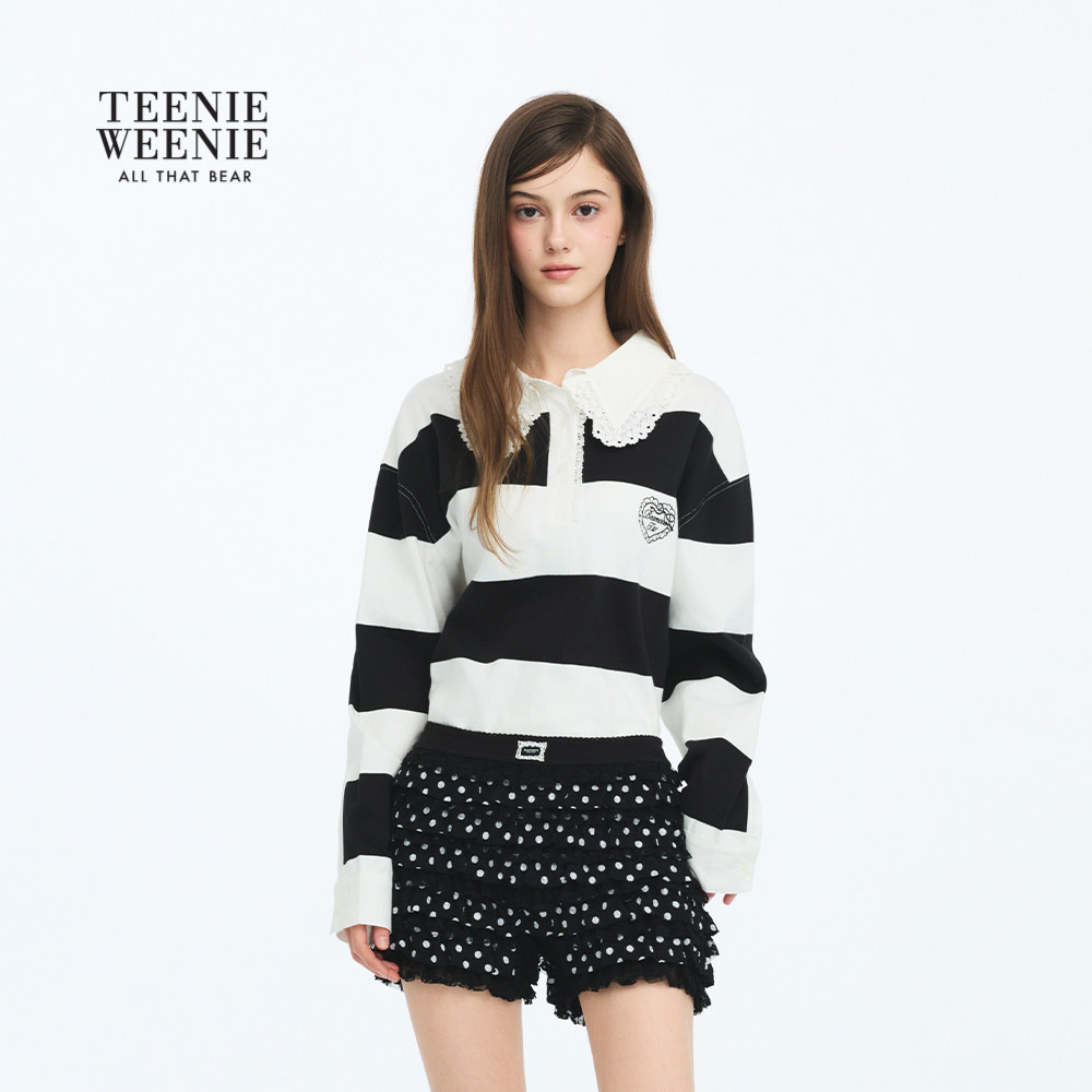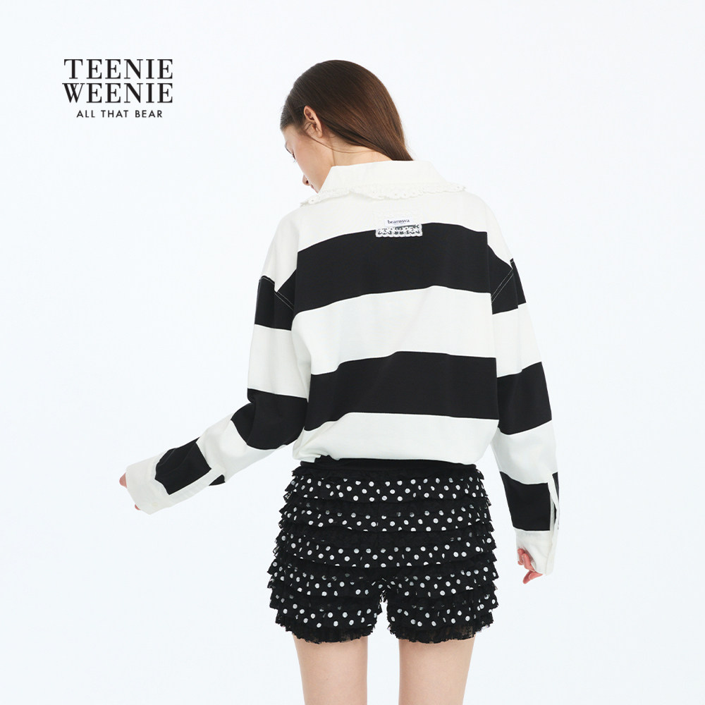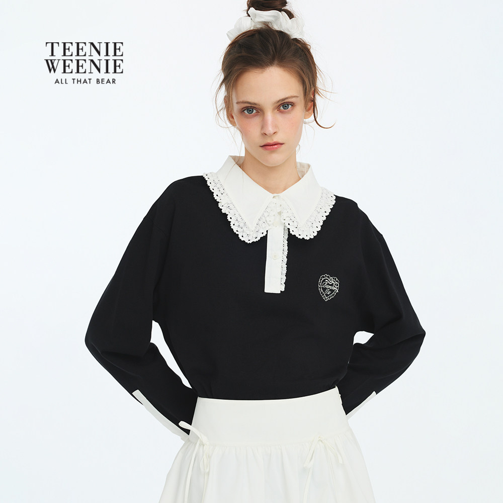 TEENIEWEENIE bearnova26春季新款女装polo领优雅蕾丝边长袖T恤