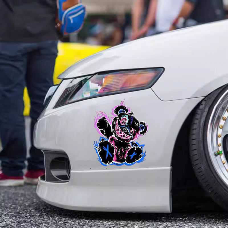 恶魔小熊个性创意卡通贴纸可爱汽车装饰趣味贴画车身划痕遮挡贴纸