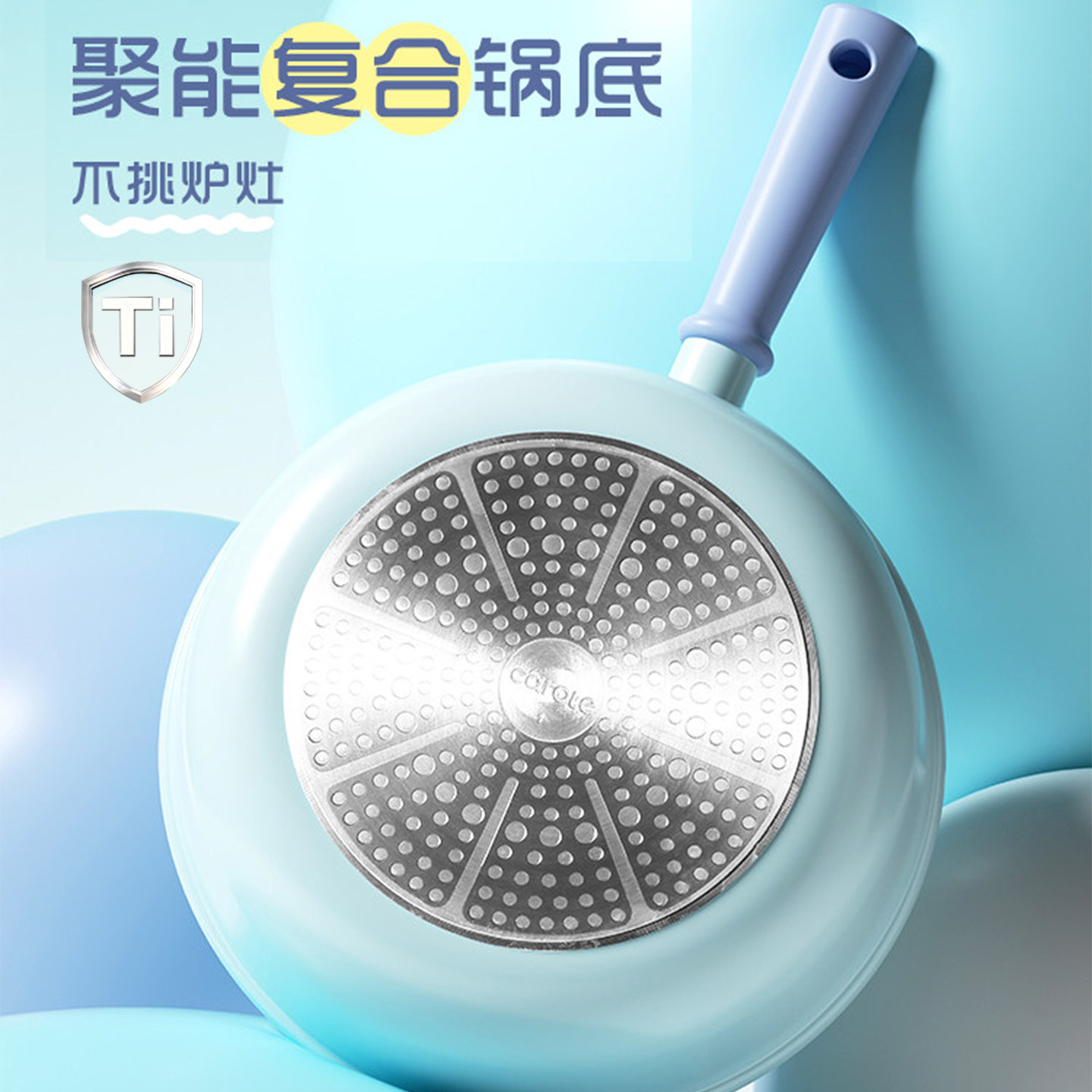 卡罗特有钛不粘锅炒锅平底锅家用炒菜锅麦饭石加深煎锅电磁炉专用