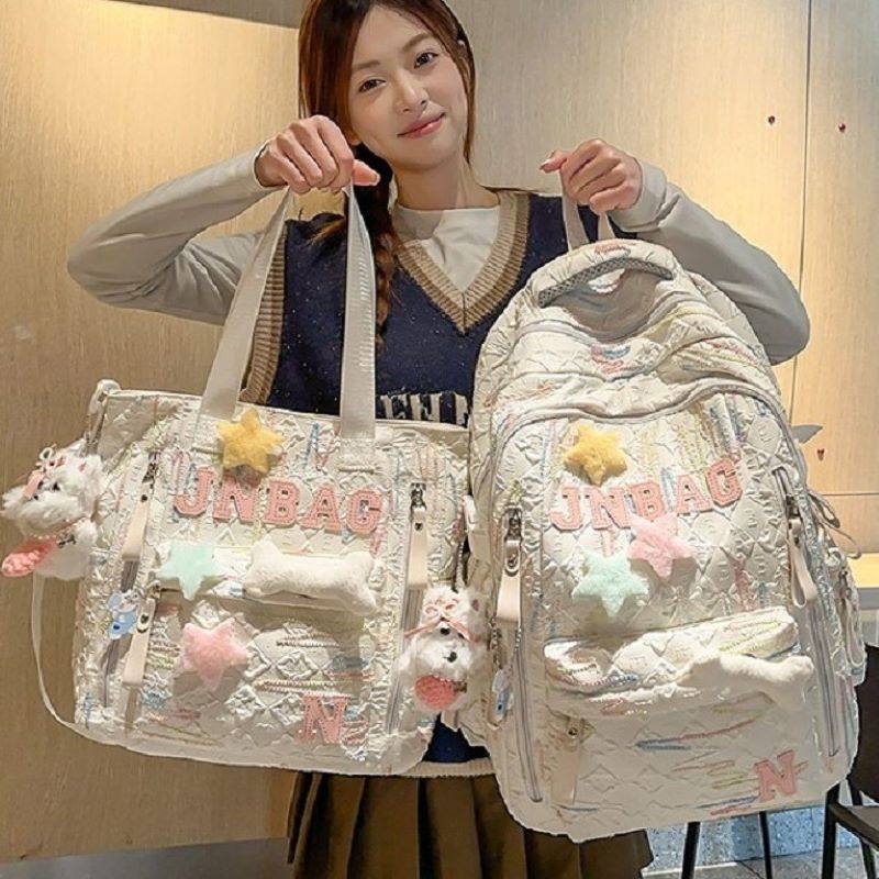 高颜值书包初中女生小学生可爱轻便双肩包高中生大容量背包单肩