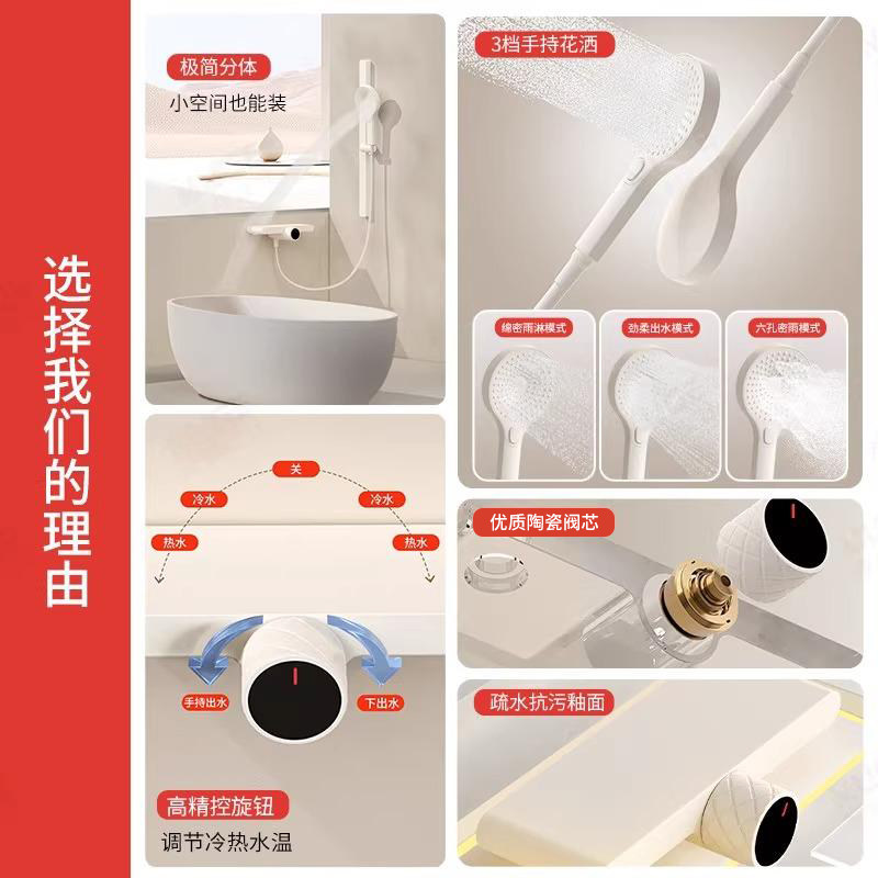 奶油风简易花洒套装家用卫生间淋浴卫浴无顶喷分体式浴室喷头洗浴
