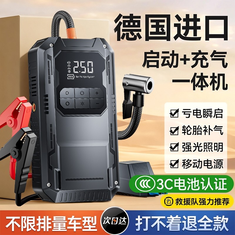 汽车应急启动电源车载充气泵一体机电瓶搭电宝紧急强启动打火神器