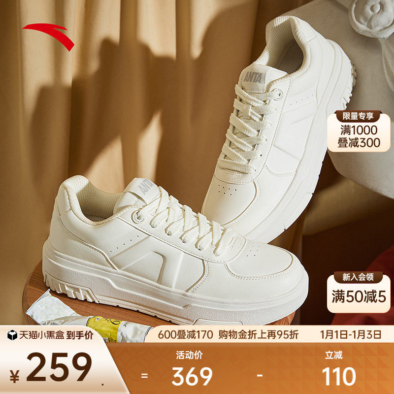 安踏元年丨板鞋女鞋冬季舒适厚底增高小白鞋轻便休闲鞋百搭运动鞋