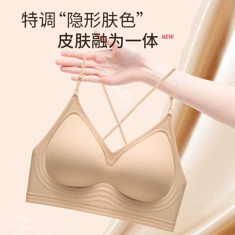 草本初色内衣女细肩带无痕夏季薄款大胸显小胸聚拢凉感无钢圈文胸