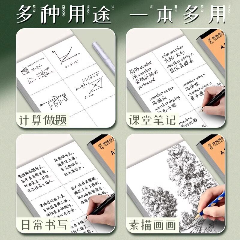 加厚分区草稿本小学生用草稿纸可撕款考研专用大学生用空白高中生演算纸数学初中生打草16k白纸B5批发便宜A5