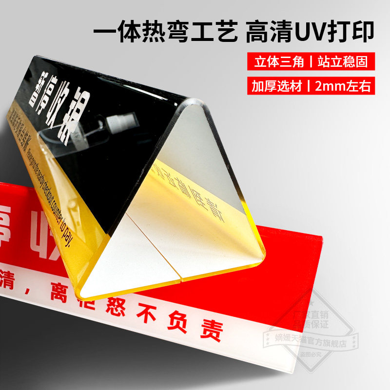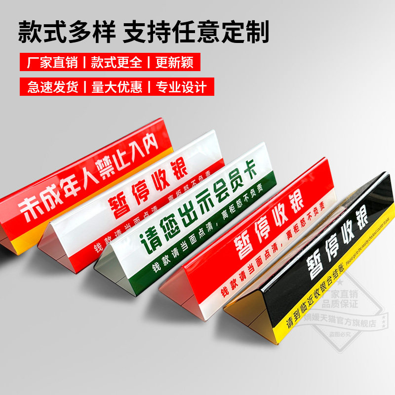 亚克力三角桌牌请出示会员卡暂停收银暂停服务双面显示立牌台牌未成年人禁止入内定制展示牌