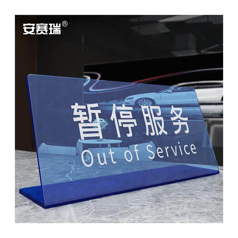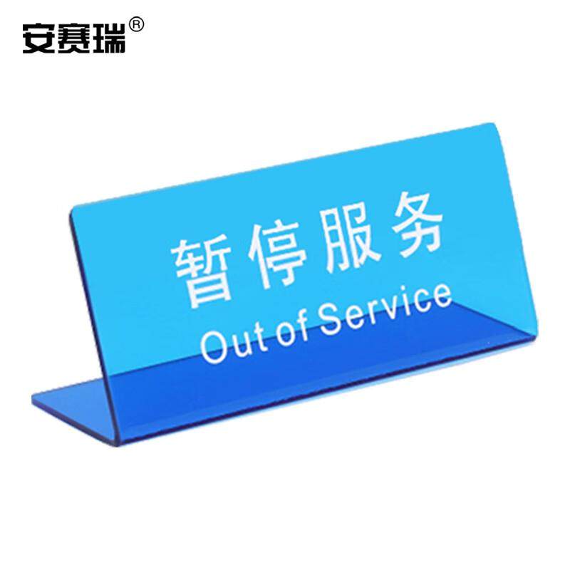 安赛瑞指示牌L型亚克力标识牌商超公共场所标志提示牌暂停服务蓝