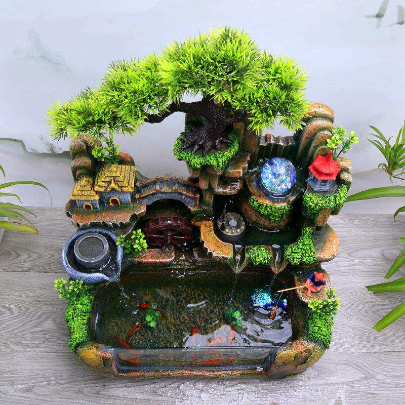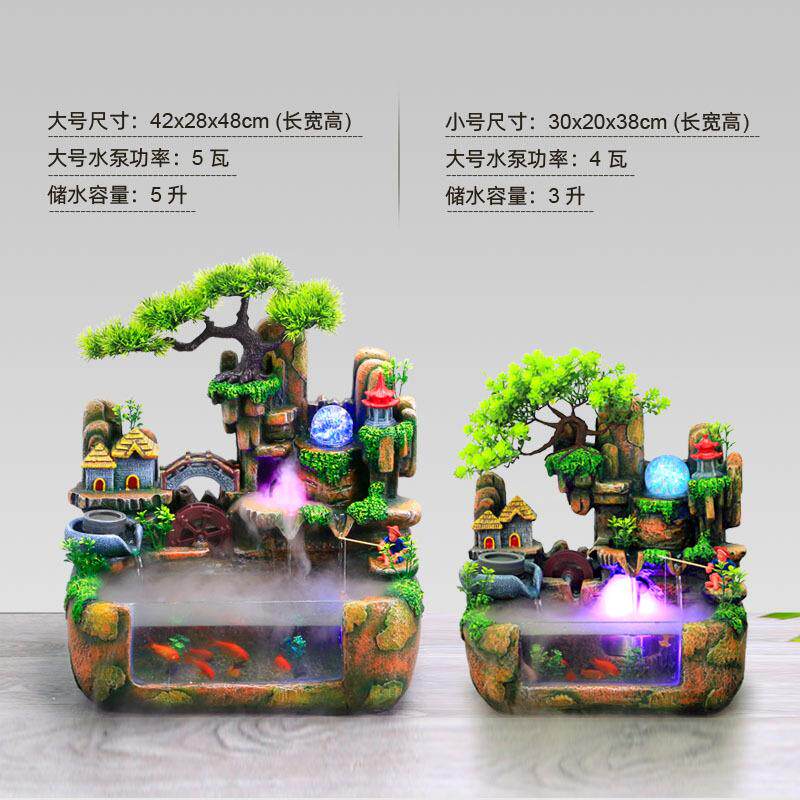 假山招财鱼缸造景客厅家用中小型水族箱循环流水桌面创意小金鱼缸
