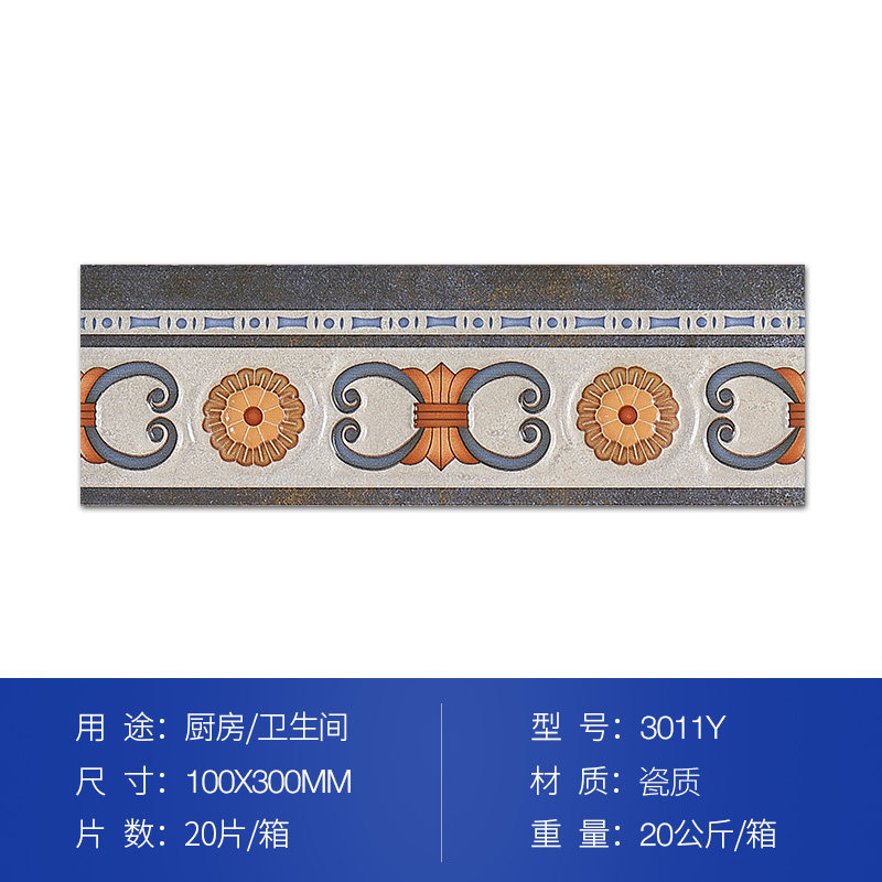 卫生间复古腰线边线100X300仿古砖边框北欧浴室腰花厨房花片瓷砖