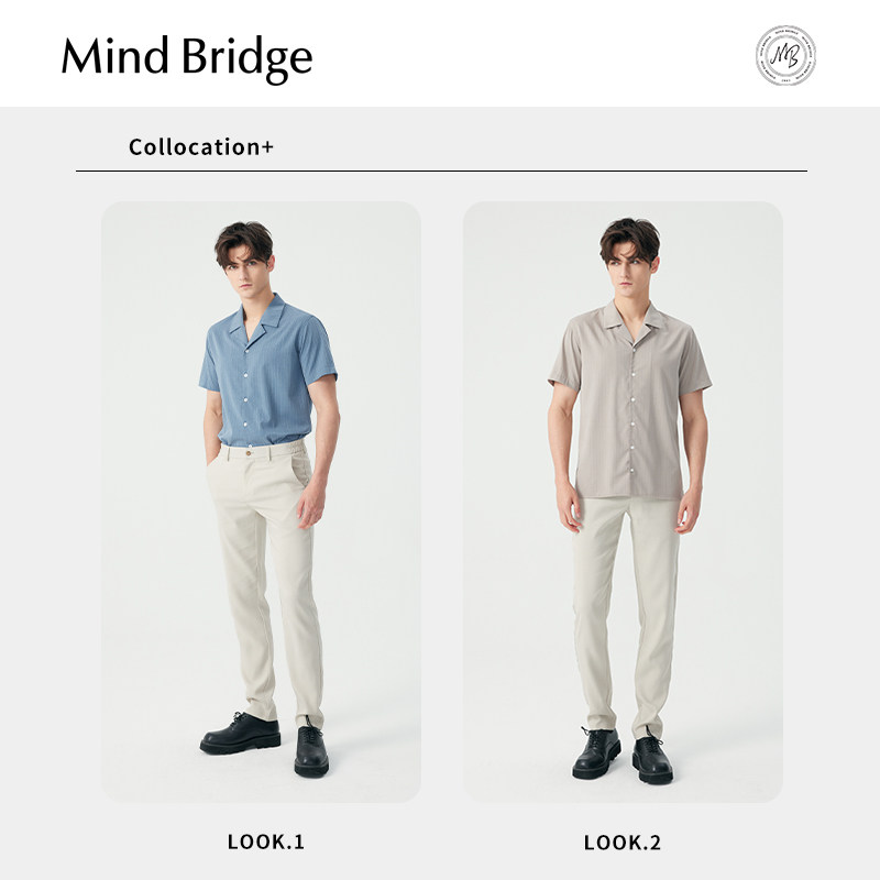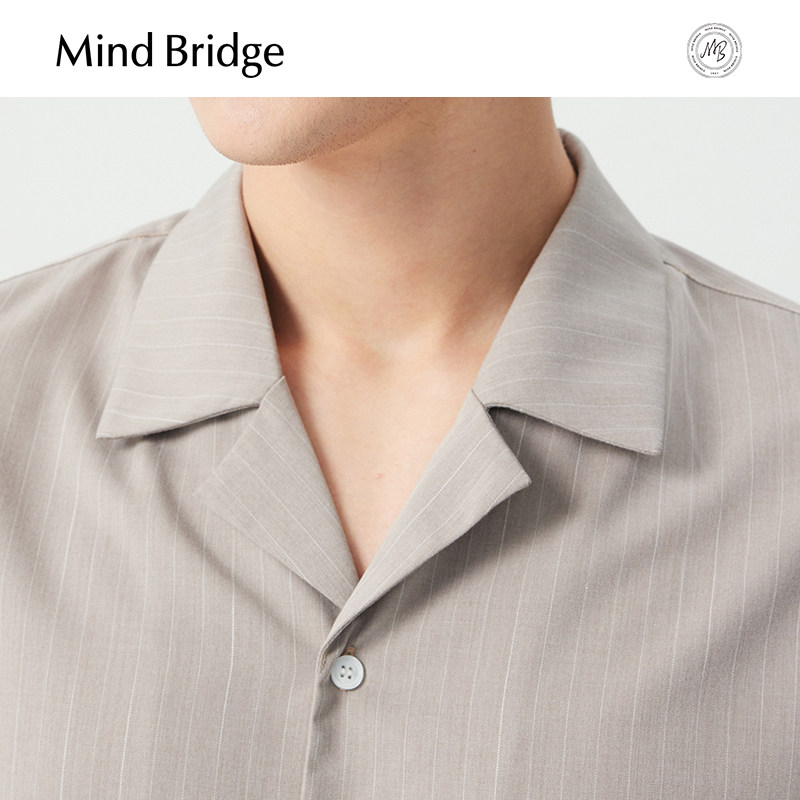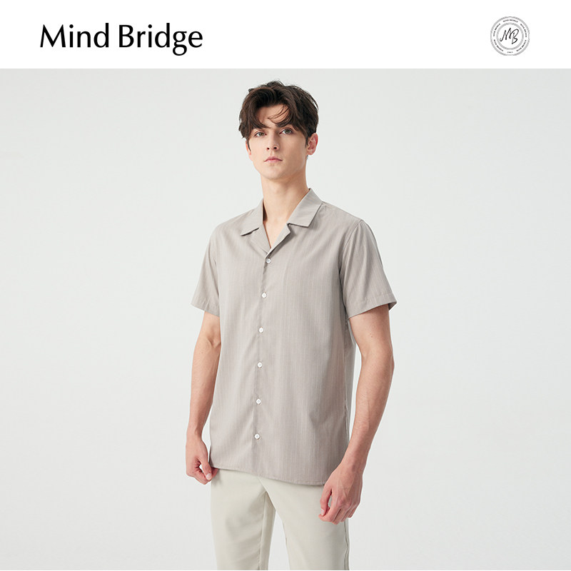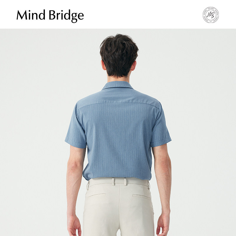 Mind Bridge夏季短袖条纹衬衫商务休闲衬衣男士复古翻领通勤上衣