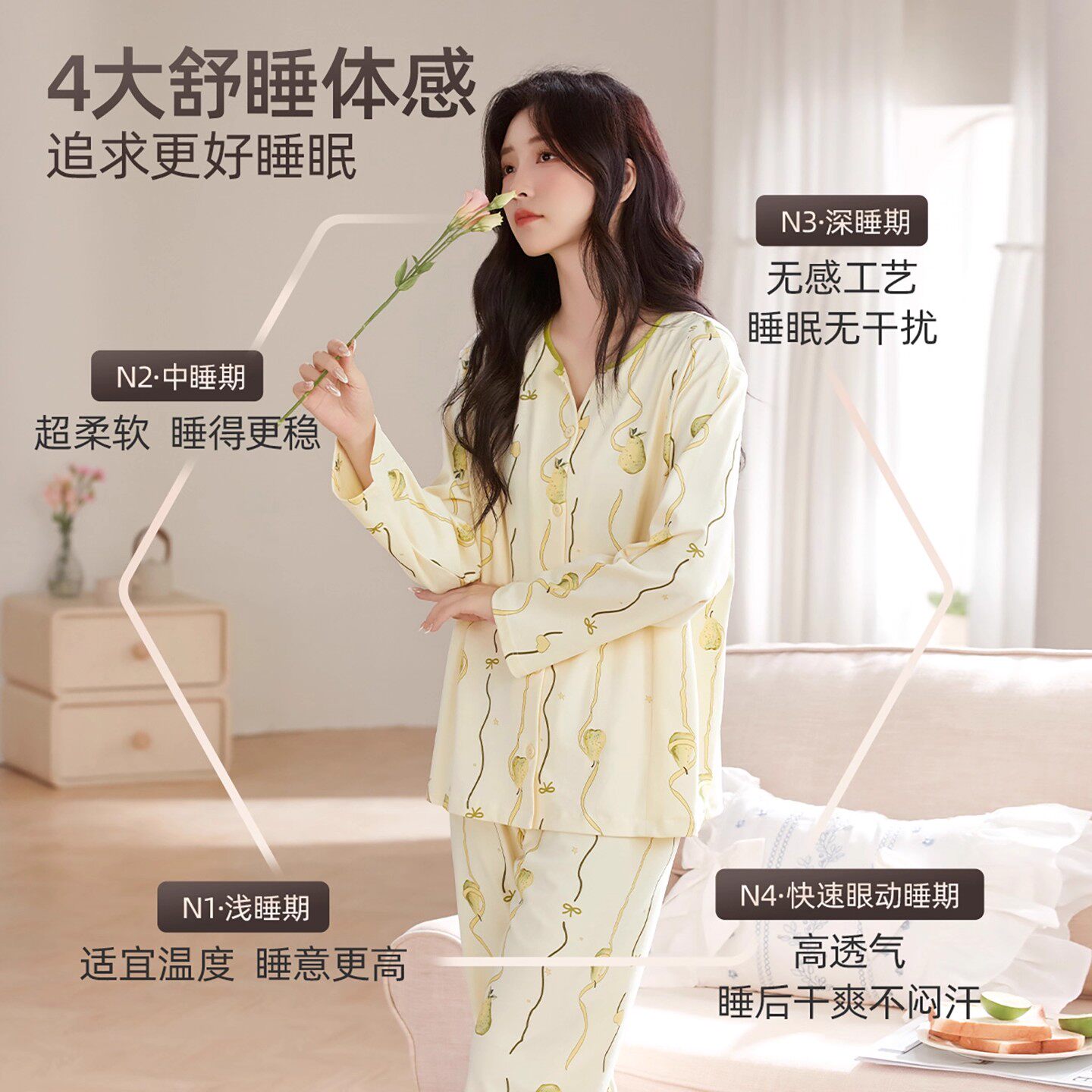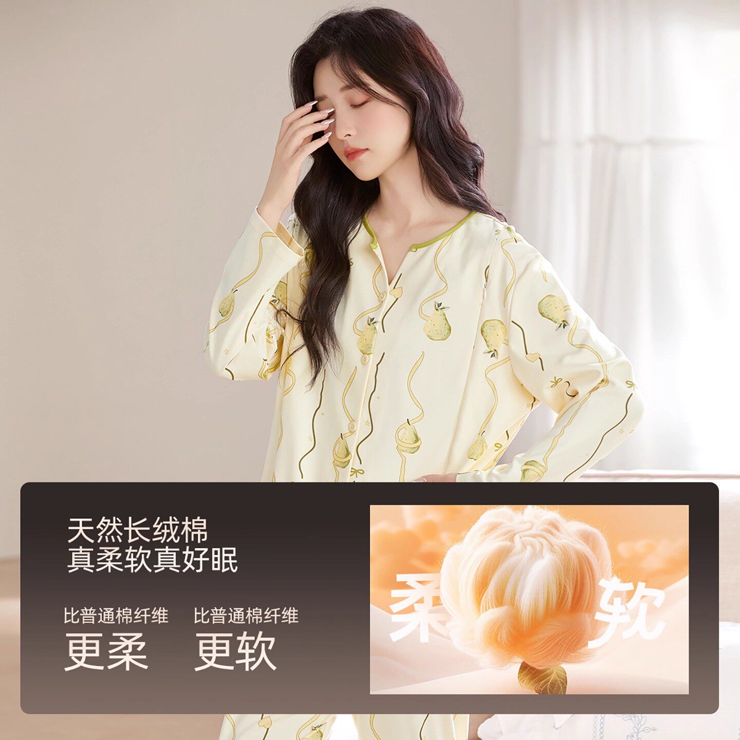 cutelife【轻羽】月子服女士长袖家居服孕妇竹棉哺乳睡衣秋冬套装