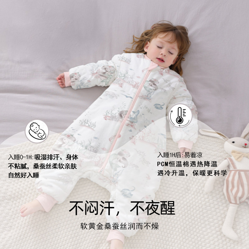 科巢婴儿睡袋春秋冬款恒温分腿睡袋桑蚕丝宝宝儿童防踢被四季通用