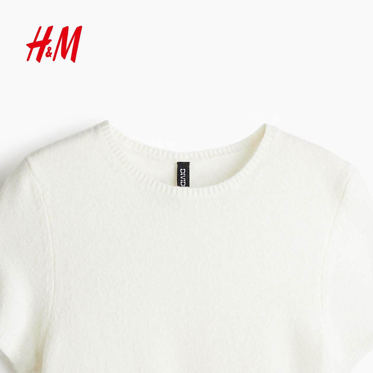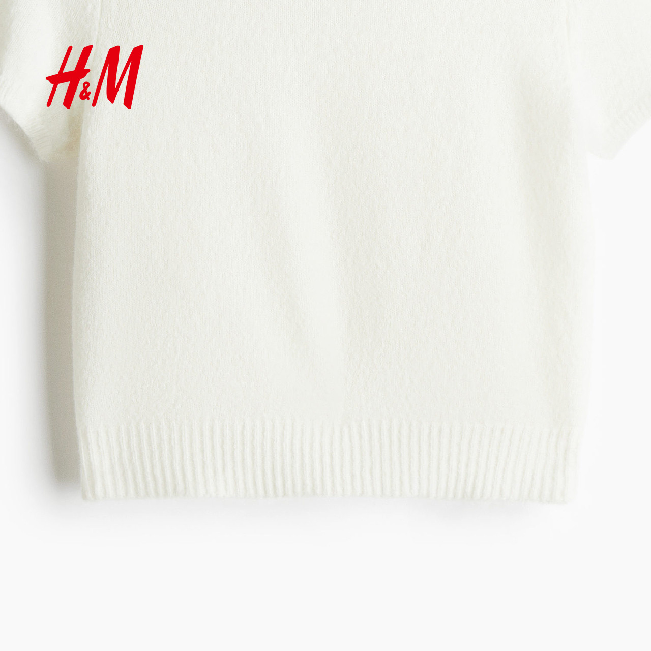 HM女装毛针织衫2025冬季新款圆领时尚显瘦修身气质短袖T恤1262821
