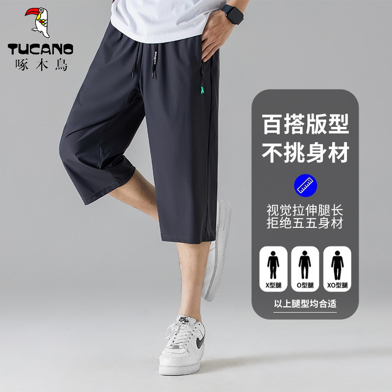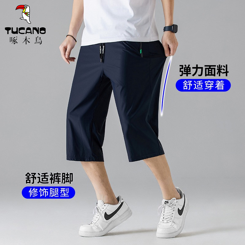 啄木鸟冰丝速干七分裤子男士夏季薄款休闲裤运动中裤宽松大码短裤