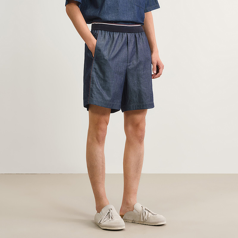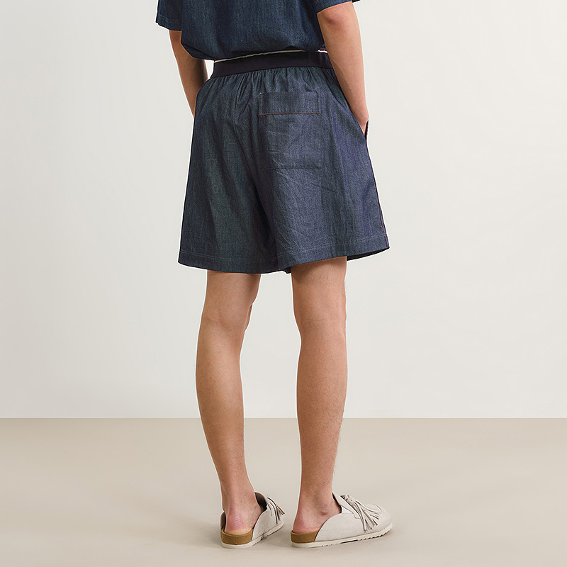 速写男装春夏新款男士裤子红边牛仔短裤宽松阔腿裤棉质休闲潮流