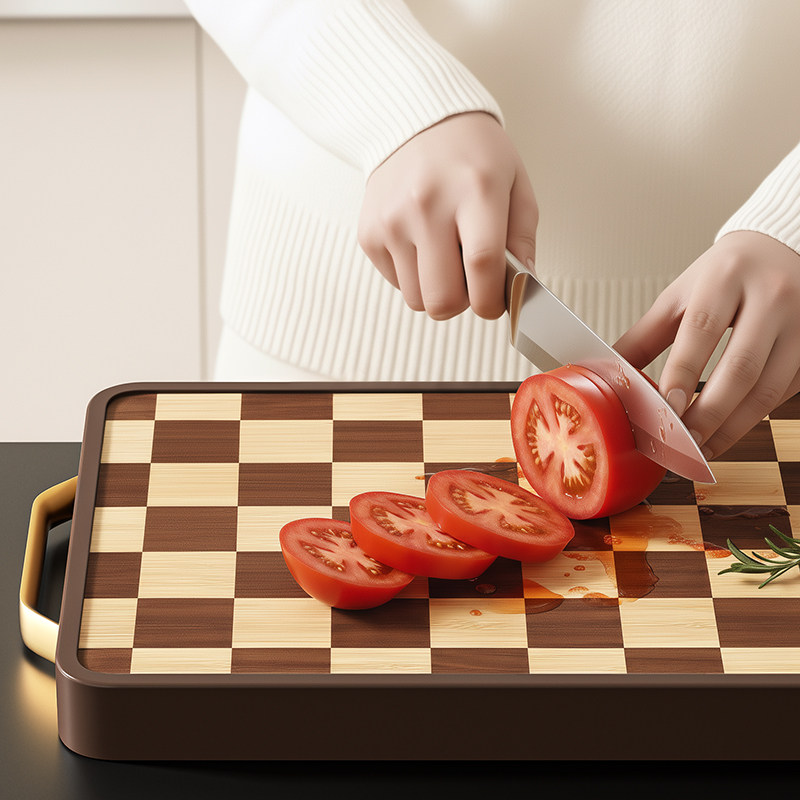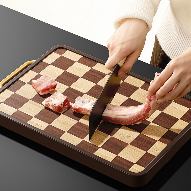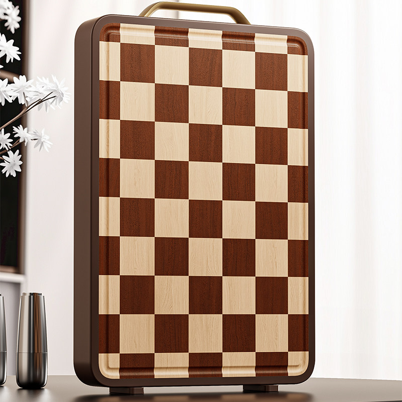 棋盘格乌檀木菜板实木粘砧板双面切菜板案板防霉抗菌家用厨房专用